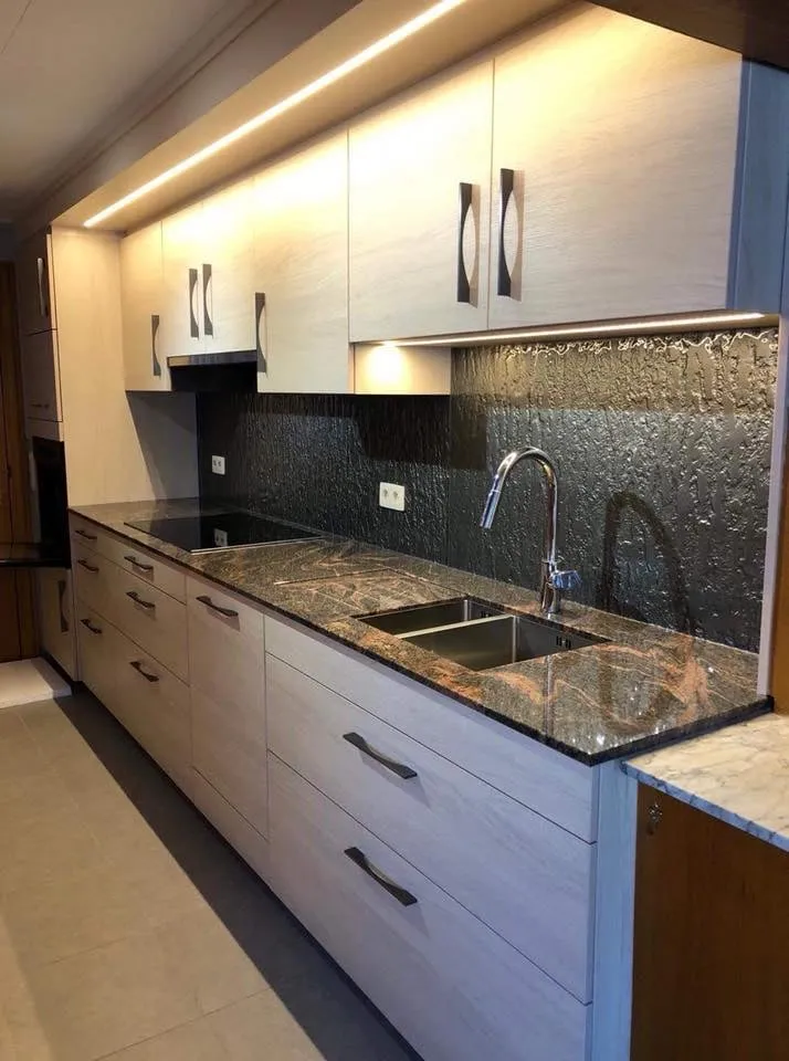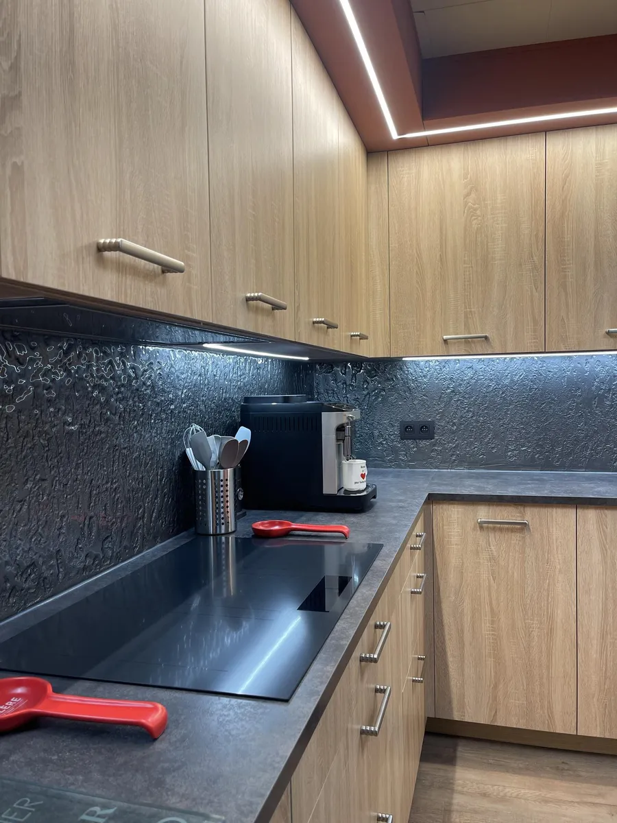 Chaque projet est une composition unique. Bois massif ou stratifié naturel, marbre veiné, inox brossé ou laiton, tout est choisi avec soin. Nos cuisines conjuguent raffinement et durabilité pour traverser le temps sans perdre en élégance.